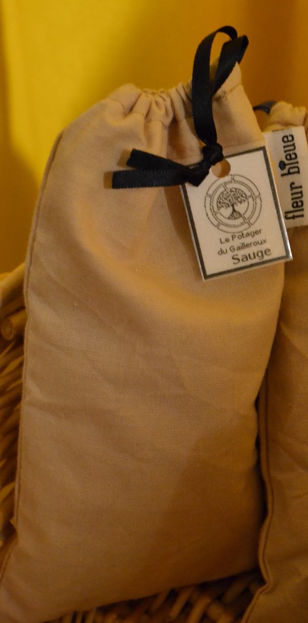 Elle est conditionnée en vrac à 2€/sachet en papier ou vendue en sachet en tissu Fleur bleue une création jodoignoise 100% faite main à 5,5 €.