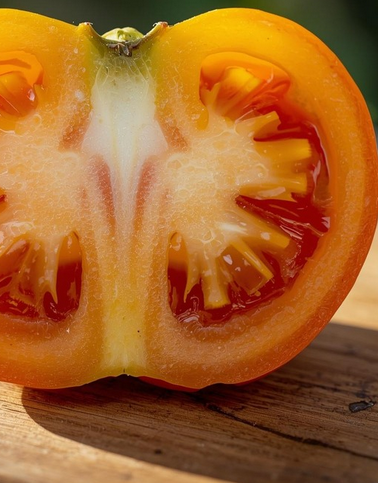 La tomate ananas est une grosse tomate à couleur orange avec un goût très sucré évoquant le goût d’ananas